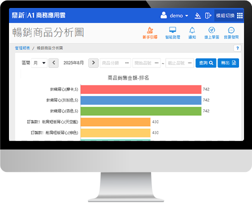 出貨延遲?帳款逾期?A1進銷存搭配經營儀表板,即時顯示銷售業績、存貨金額及應收帳款等資訊,讓您快速掌握經營狀況。
